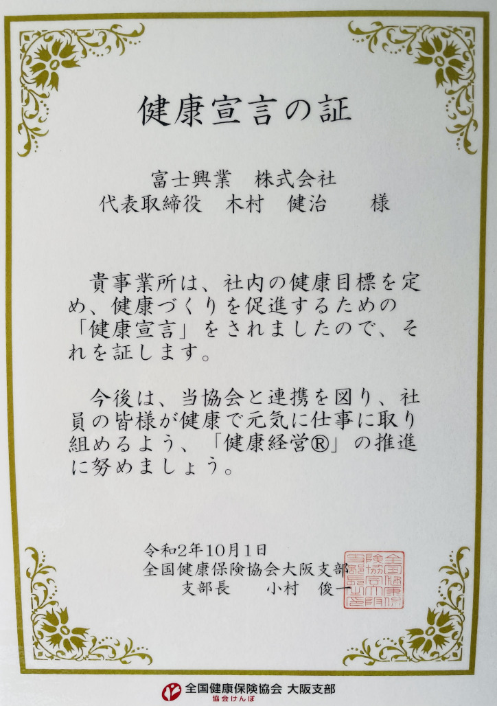 この度当社は、健康宣言を行いました!