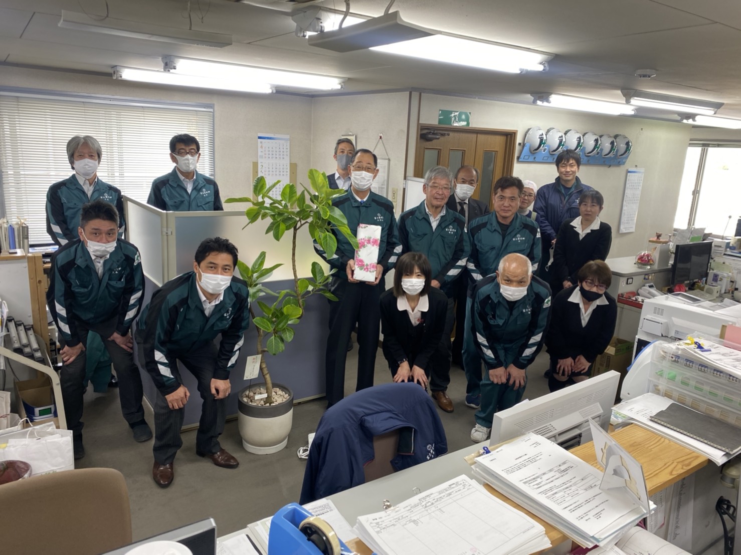 木村会長勤続50周年㊗ 令和3年3月22日で木村純会長が勤続50周年を迎えられました。 社員一同より、感謝の気持ちを込めて記念品を贈らせてもらいました。 木村会長から一言。 「たくさん良い事も悪い事もありましたが、あっという間の50年でした。 振り返ってみると社員、社内外問わず良い先輩、後輩に恵まれておりました。 そういった方々の協力があって無事、50年を迎えることが出来ました。 心から感謝しております。」 益々のご活躍を社員一同、お祈り申し上げます。