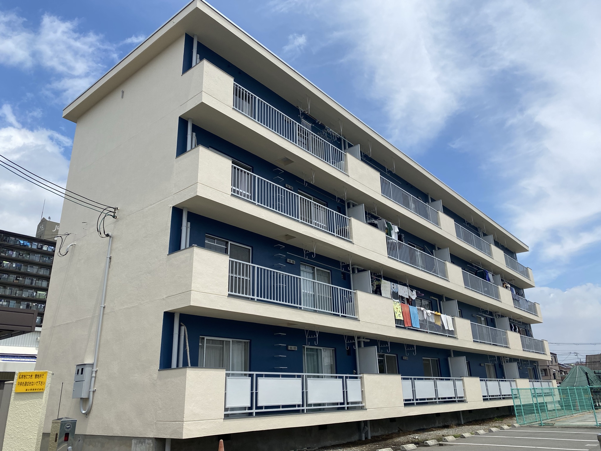 社宅の改修工事を行いました 富士興業社宅の改修工事が5月20日に完了しました。 今回の定期修繕では築約40年になるので色んな災害に備え補強、防水等の施工を行いました。 Before After アイボリーで慣れ親しんだ外装に今回、藤川君の提案でネイビーの差し色が採用されました。 落ち着いた雰囲気になり居住者からも新鮮な気持ちで仕事も頑張れると大変好評です(*^^*)