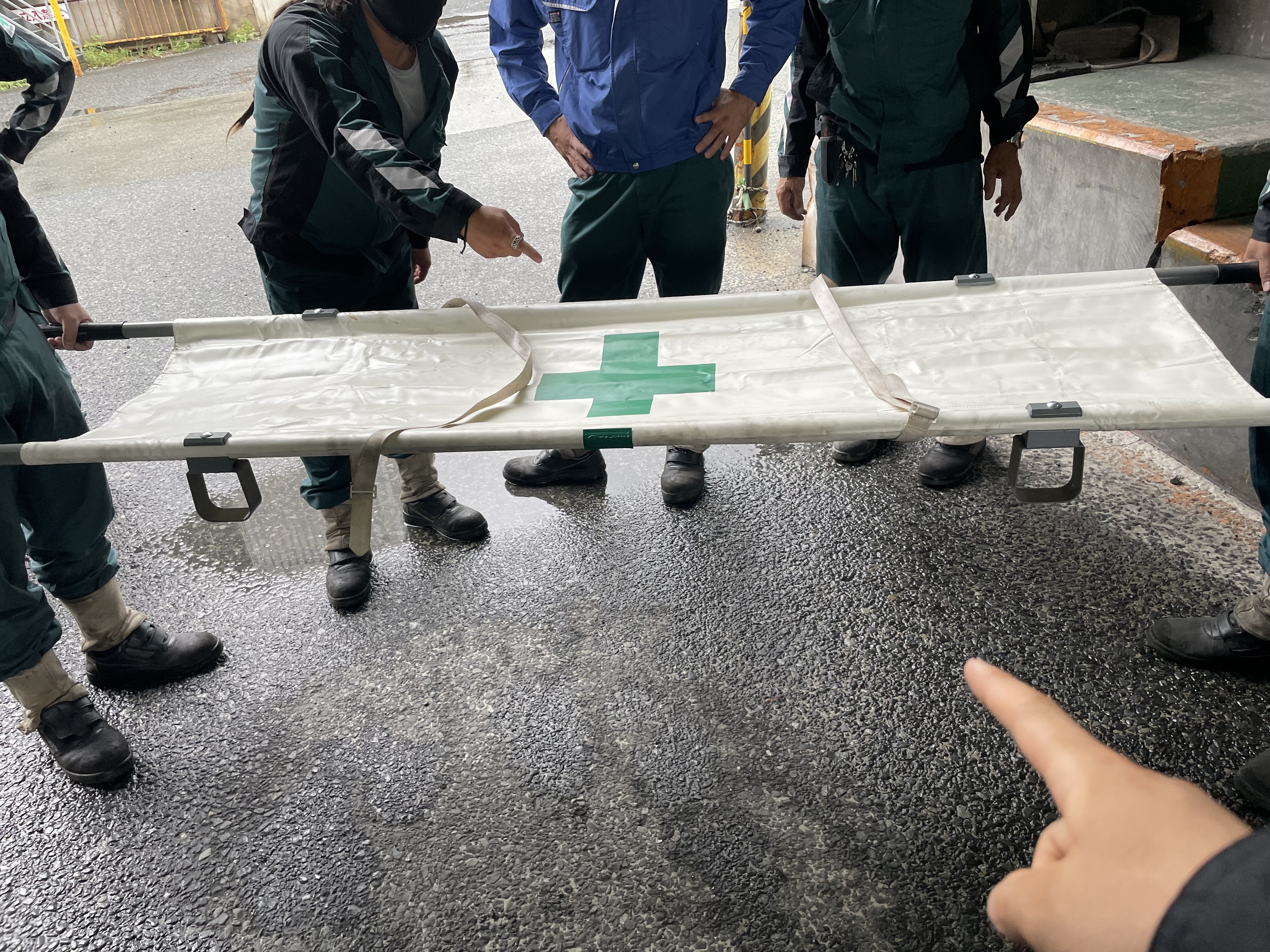 防災訓練を行いました 9月3日、第10回 大阪880万人訓練に合わせ当社も防災訓練を行いました。 木村社長を中心に点呼、ミーティングを行いました。 加えて今年は倉庫に常設されている担架の点検を行いました。 使用機会がなかったので少し汚れていました。使用しないにこしたこと はないですが、万一に備え定期的にメンテナンスを行っていきます('◇')ゞ