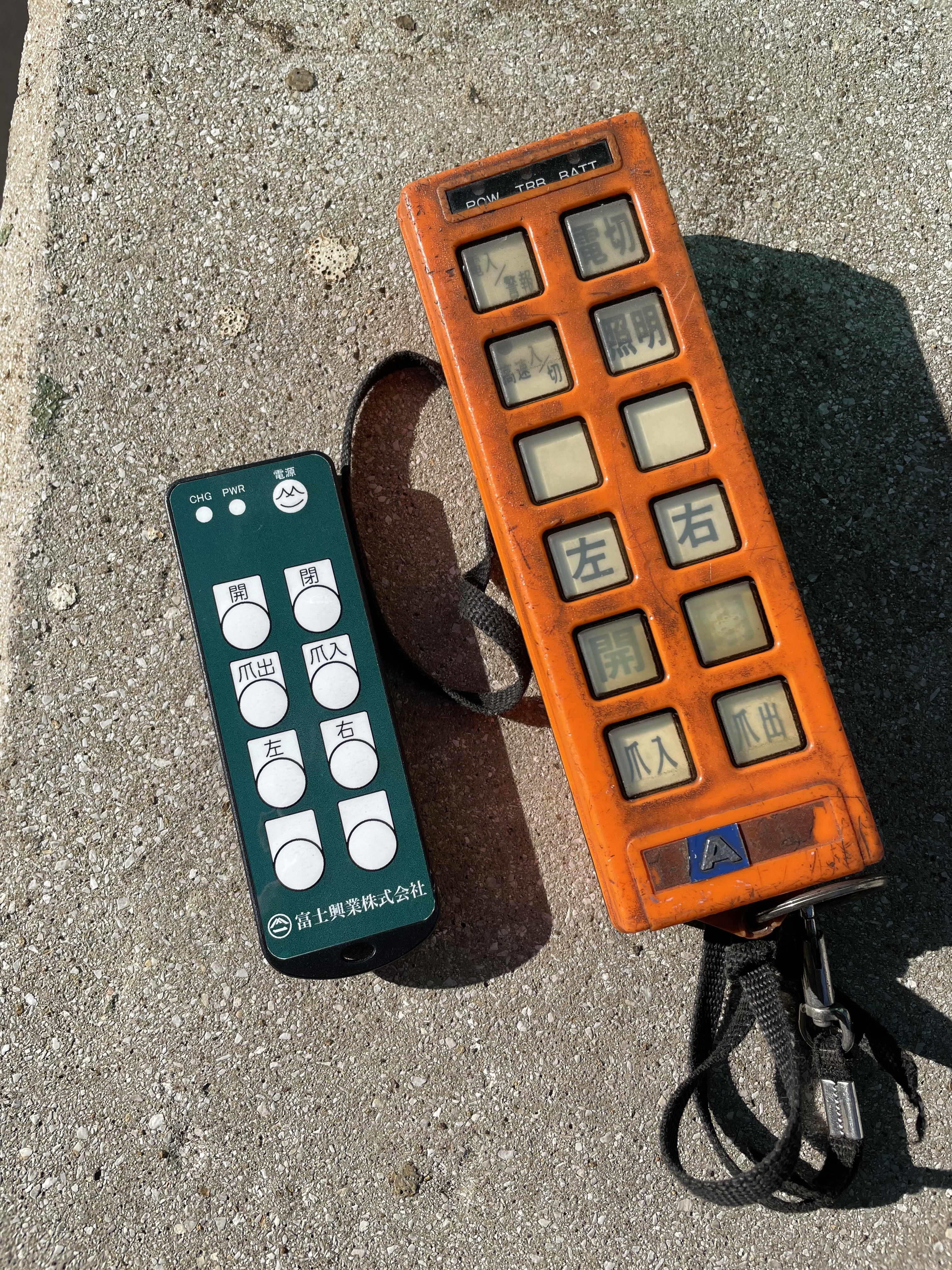 右が以前のリモコンです。ストラップを首からかけたりして移動したりしていました。