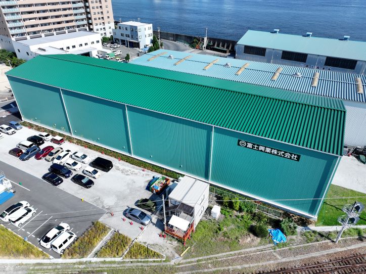 3号倉庫完成!!!! 富士興業本社3号倉庫が完成しました!!! 18日の竣工式を経て、順調に稼働スタートしております! 外壁、屋根材には日鉄鋼板の「ニスクカラーPro」を採用。 30tのクレーンを搭載。結露対策のために大型シーリングファンを導入! 新倉庫竣工を記念して、富士興業PR動画を作成しました! Check now(^_-)-☆