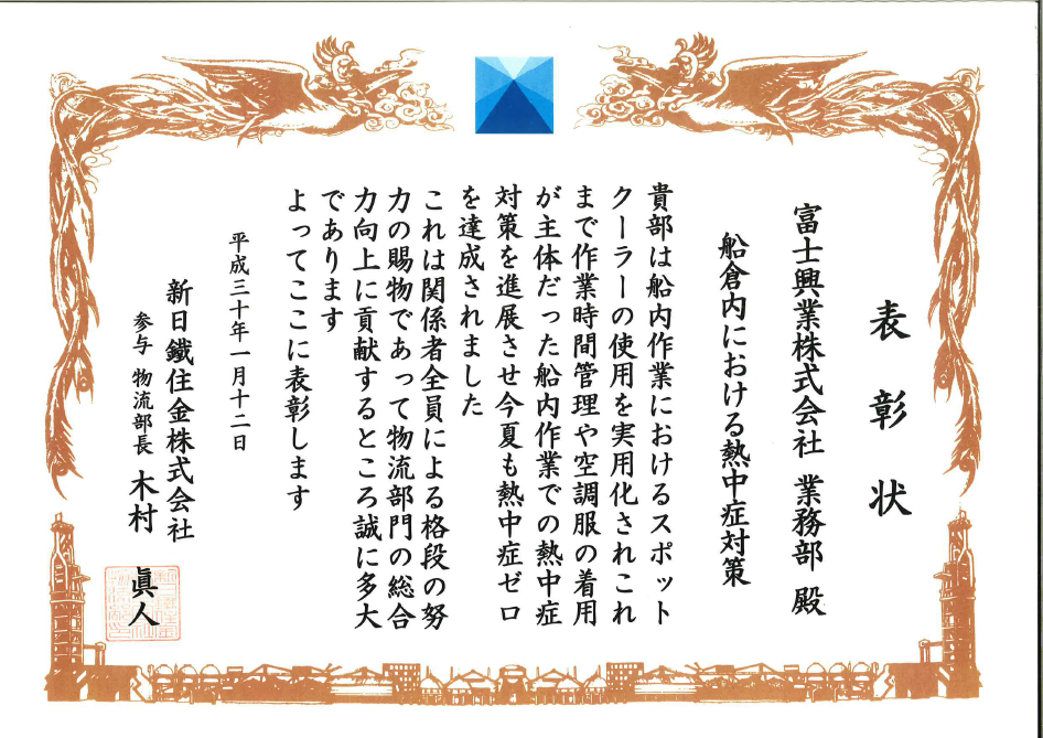 新日鐵住金株式会社様より物流部長表彰を頂きました